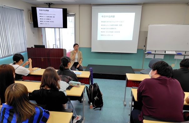 講義では、①人との関わり②知識・技術③言葉と文章の取り扱い④大人の社会あるある、の4項目について、ディスカッション形式で進めました。